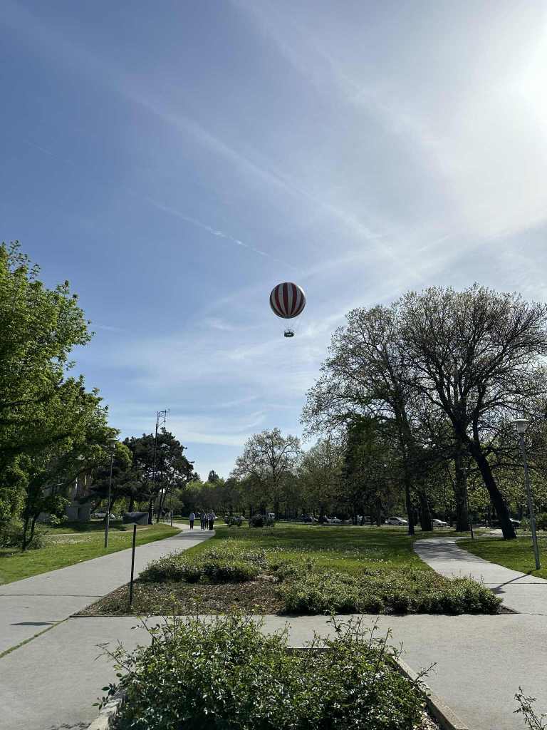 Nieopodal znajdują się też słynne termy Széchenyiego. No i atrakcja, która mocno nas kusiła – lot balonem nad parkiem. Balon rzeczywiście wznosił się nad Városliget i musiało to dawać świetny widok na całą okolicę, ale kiedy zobaczyłyśmy cenę, stwierdziłyśmy zgodnie, że jednak wolimy za te pieniądze kupić parę pamiątek i z balonu zrezygnowałyśmy.