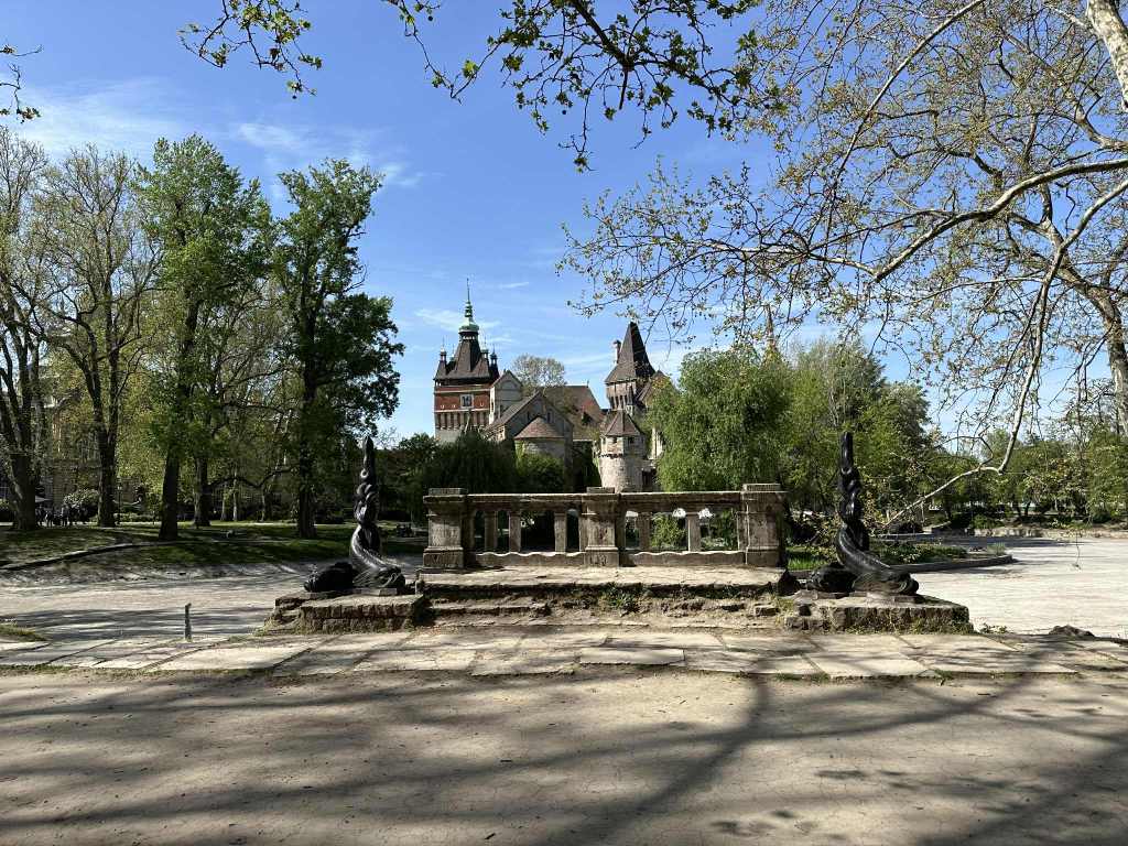 Zaraz za placem rozciąga się wielki park Városliget, który szybko polubiłyśmy. To ogromna przestrzeń, w której można spędzić godziny na spacerach. Jednym z jego największych zaskoczeń był Zamek Vajdahunyad. Trudno uwierzyć, że powstał dopiero pod koniec XIX wieku, bo wygląda jak autentyczna średniowieczna twierdza. W internecie widziałyśmy zdjęcia, gdzie zamek odbija się malowniczo w wodzie, ale akurat podczas naszego pobytu fosa była pusta. Wypełniono ją ponownie dopiero po naszym wyjeździe – pech, bo otoczony wodą zamek pewnie wyglądałby jeszcze ładniej.