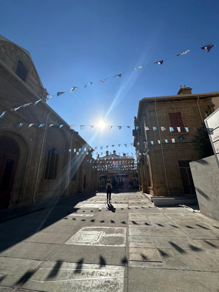 Wyjazd był służbowy i trwał pięć dni – czasu na pełne poznanie miasta brakowało, dlatego postanowiłyśmy wykorzystać każdą wolną chwilę i eksplorować Nikozję bez sztywnego planu, bardziej na zasadzie „gdzie nogi poniosą”. Już pierwszego dnia, praktycznie od razu po zameldowaniu w hotelu, ruszyłyśmy na miasto. A tam… nic. Puste ulice. Zero ludzi. Jakby wszyscy nagle opuścili Nikozję i schowali się w bunkrach. Jedynymi oznakami życia były samochody, które pędziły jakby ich kierowcy uciekali przed zombie apokalipsą. Spacer po centrum bardziej przypominał scenografię z filmu katastroficznego niż europejską stolicę.