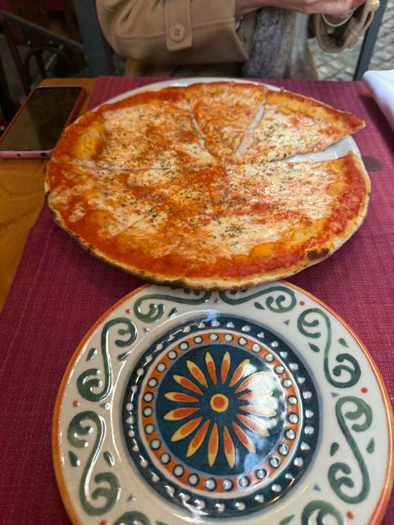 Po kilku godzinach takiego chodzenia porządnie zgłodniałyśmy, dlatego jednogłośnie postanowiłyśmy wcielić w życie pomysł zjedzenia tradycyjnej włoskiej pizzy i makaronu w lokalnej knajpce. Znalazłyśmy klimatyczny lokal nieco na uboczu, oddalony od głównych ulic i drogich miejscówek nastawionych praktycznie tylko na turystów. Co prawda obsługująca nas pani słabo mówiła po angielsku, ale koniec końców jakoś się dogadałyśmy odnośnie zamówienia. Co tu dużo mówić – makaron i pizza smakowały obłędnie! Włoska kuchnia w najlepszym wydaniu. Mam tutaj tylko jedno zastrzeżenie – w tym lokalu podobno nie mieli aperola, chociaż wyraźnie figurował on w menu8. Musiałam się pocieszyć w tym wypadku limoncello, ale było ono tak samo dobre jak nasze dania obiadowe, więc szybko dobry humor mi wrócił.