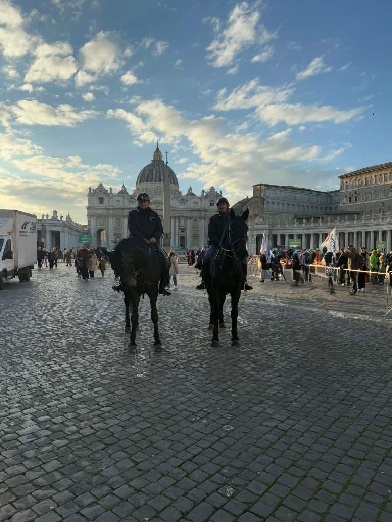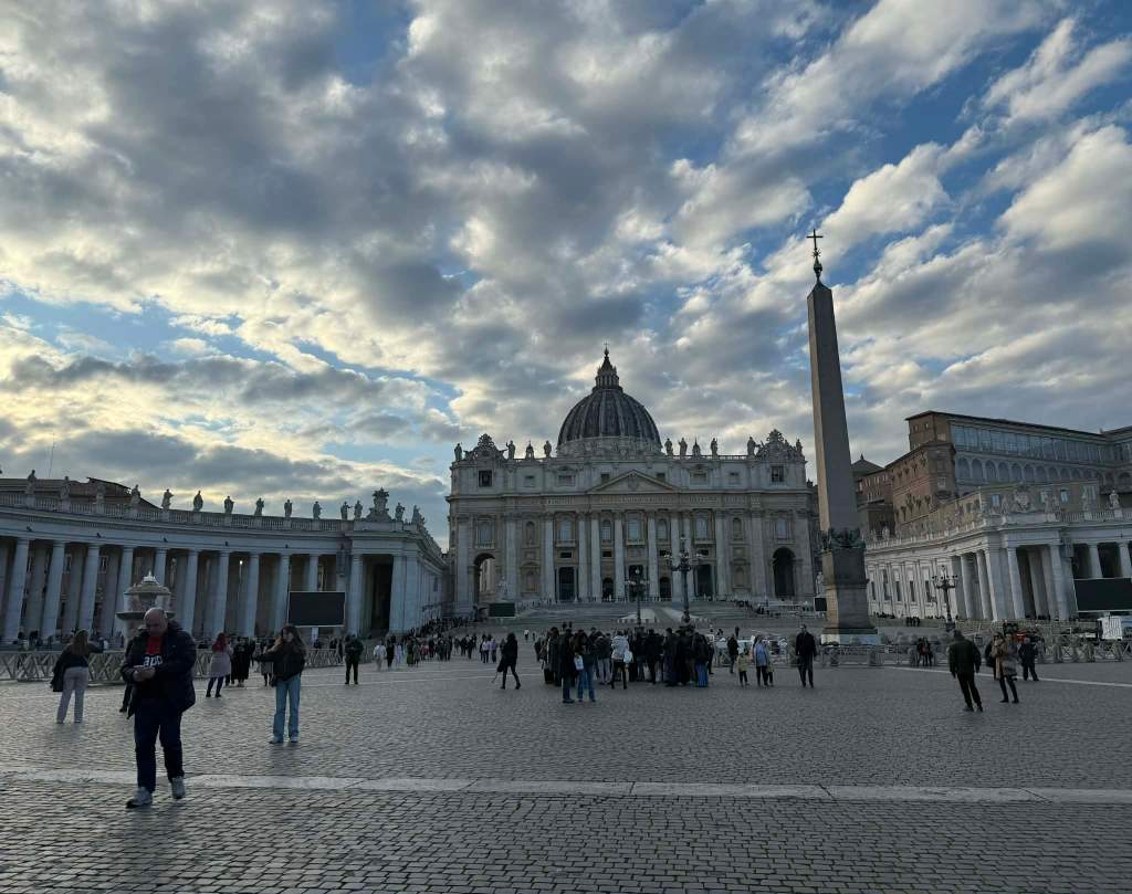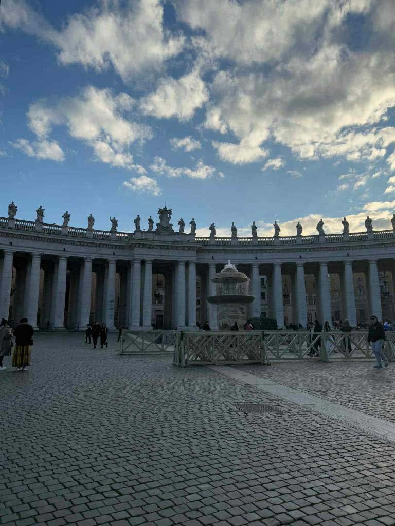 Na koniec naszego zwiedzania udałyśmy się do Watykanu, bo jak to być w Rzymie, a nie odwiedzić tej enklawy? Po drodze kupiłyśmy sobie jeszcze kilka drobnych pamiątek i spacerkiem doszłyśmy do celu, który ku mojemu zdziwieniu był stosunkowo blisko innych ciekawych atrakcji Rzymu. Kolejne zdziwienie wywołało u mnie to, że praktycznie nie ma tam wyraźnie oznaczonej granicy, mimo że jest to osobne państwo. Fajnie było zobaczyć na żywo Bazylikę i Plac Świętego Piotra – miejsca, które wcześniej widziało się tylko w telewizji podczas ważnych uroczystości kościelnych.