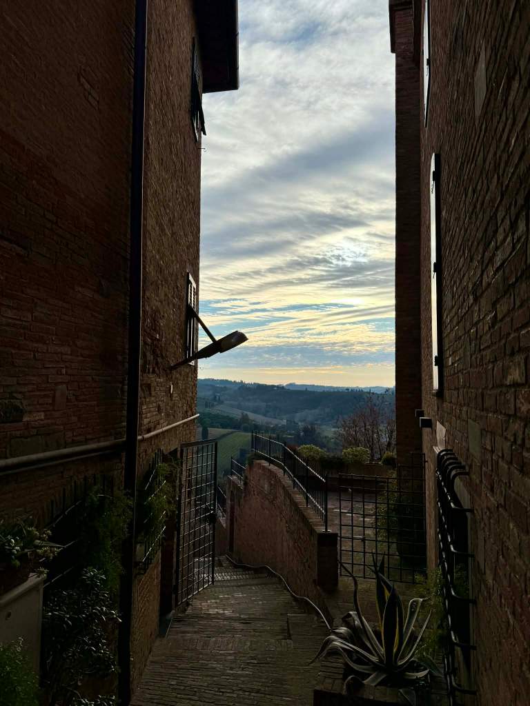 Jako osoba, której była to pierwsza wycieczka do Włoch, oceniam to miasteczko bardzo pozytywnie. Gdybym miała opisać je jednym zdaniem, to jest jednym z takich, które znajdziecie w standardowych tapetach Windowsa XP w kategorii „krajobrazy i miejsca”. Można śmiało powiedzieć, że jest położone w samym sercu Toskanii i wygląda dokładnie tak, jak człowiek wyobraża sobie urokliwe włoskie miasteczko. Wąskie uliczki, kamienne domy w ciepłych kolorach i widoki, które dosłownie proszą się o zdjęcie. A co najlepsze – nie ma tu takiego tłumu jak w największych turystycznych miejscowościach, więc można spokojnie pochodzić i po prostu nacieszyć się klimatem.
