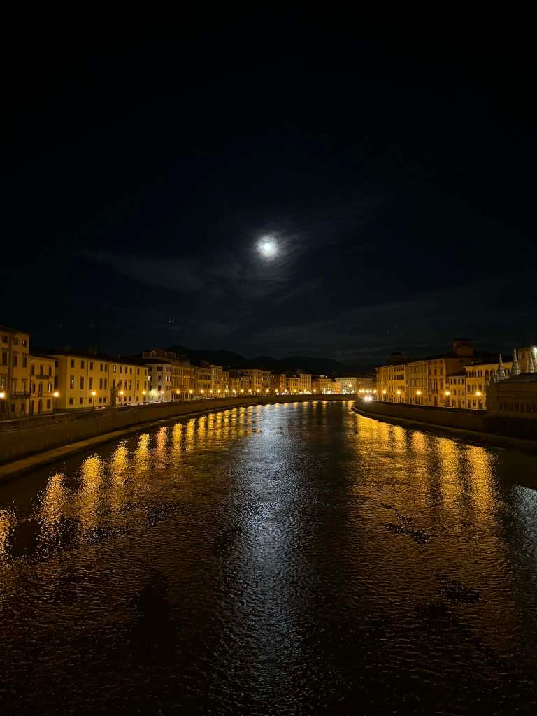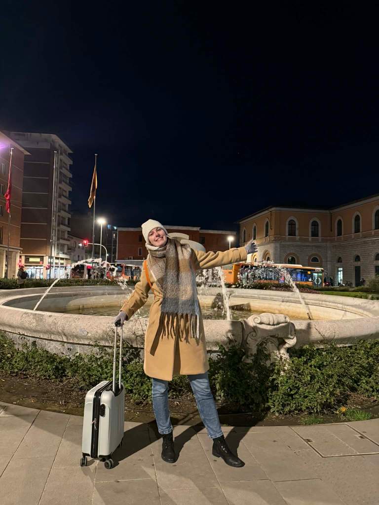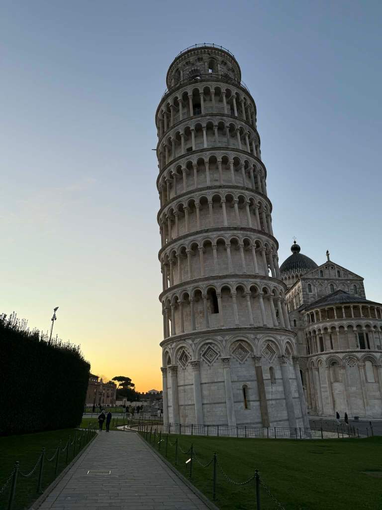 Pociąg, do którego wsiadłyśmy, nie jechał bezpośrednio do naszego celu podróży. Czekała nas przesiadka w Pizie, ale z na tyle dużym zapasem czasu, że mogłyśmy spokojnie ruszyć na szybkie zwiedzanie i zobaczyć przede wszystkim najbardziej rozpoznawalny symbol miasta – Krzywą Wieżę. Niestety, entuzjazm dość szybko opadł. Poza tą jedną, znaną na całym świecie ikoną, rzeką, magnesami za 1 euro i czymś na kształt „Fontanny di Trevi” (w wersji z Temu) stojącej przed dworcem kolejowym, trudno było znaleźć coś, co naprawdę przyciągnęłoby uwagę. W gruncie rzeczy cieszyłyśmy się, że Piza była tylko przystankiem po drodze. Naszym zdaniem specjalna wycieczka wyłącznie do tego miasta mija się z celem – po maksymalnie dwóch godzinach zaczyna wiać nudą.