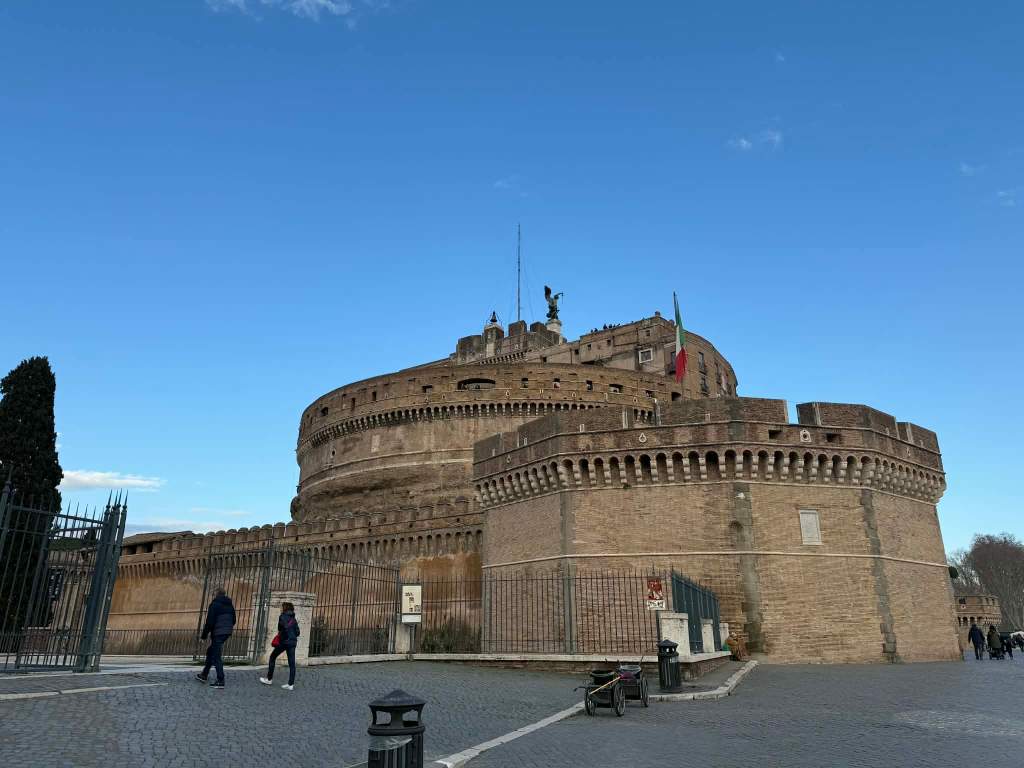 Nabijając dobrych kilka tysięcy kroków, zaliczyłyśmy spacer z głównego dworca do starego miasta, mijając po drodze takie punkty charakterystyczne jak: Koloseum, Forum Romanum, Fontanna di Trevi, Panteon, Zamek Świętego Anioła oraz co najmniej kilkanaście zabytkowych kościołów. Czasu nie miałyśmy co prawda za wiele, więc przy tych zabytkach zatrzymywałyśmy się dosłownie na chwilę i nie wchodziłyśmy do środka – po prostu szybka sesja zdjęciowa i lecimy dalej. Pogoda tego dnia bardzo nam sprzyjała – było bardzo słonecznie i ciepło jak na styczeń – całkowite przeciwieństwo temperatury w San Miniato.